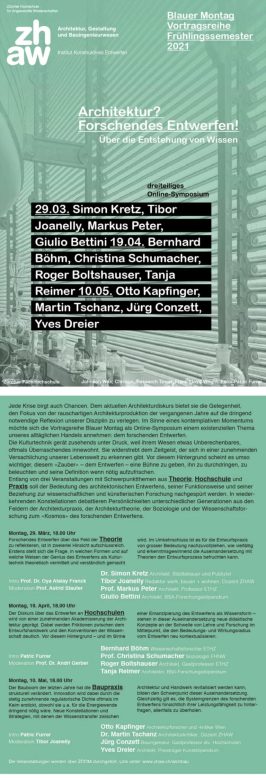 ‹Blauer Montag Vortragsreihe, Frühlingssemester 2021: Architektur? Forschendes Entwerfen! Über die Entstehung des Wissens›