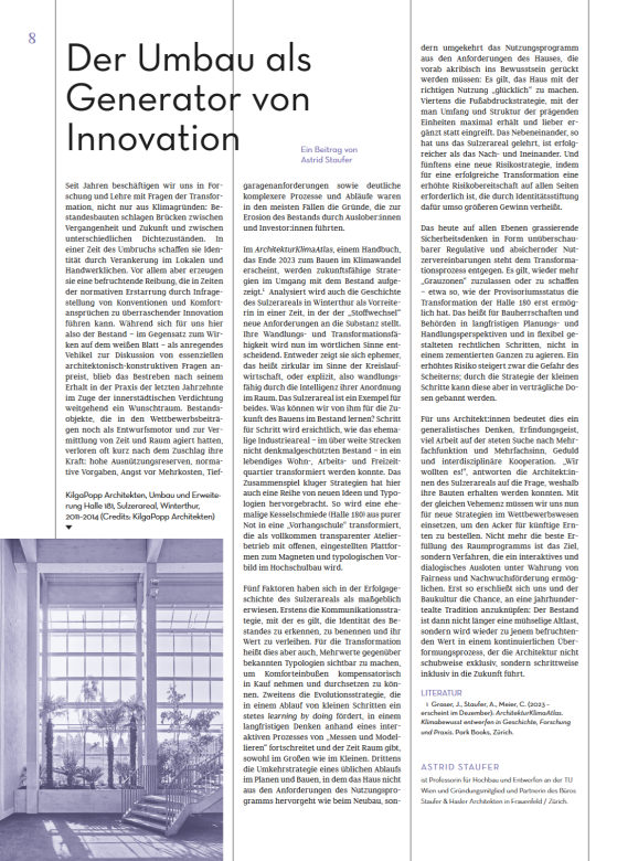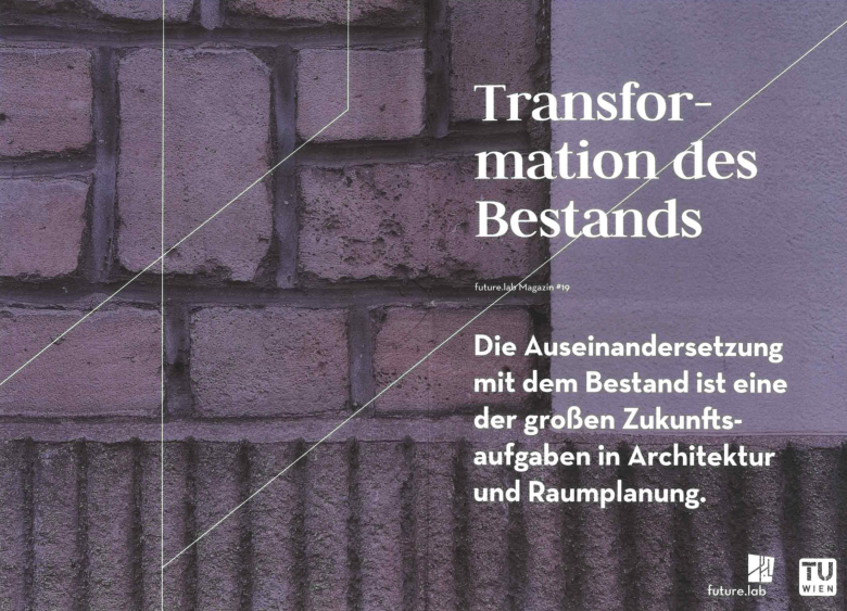 Die Fakultät für Architektur und Raumplanung widmet sich in diesem Studienjahr 2023/24 der Transformation des Bestandes. So hat die neunzehnte Ausgabe des future.lab-Magazins das Thema aufgegriffen und Kolleg:innen der Fakultät um ihren Input gebeten.